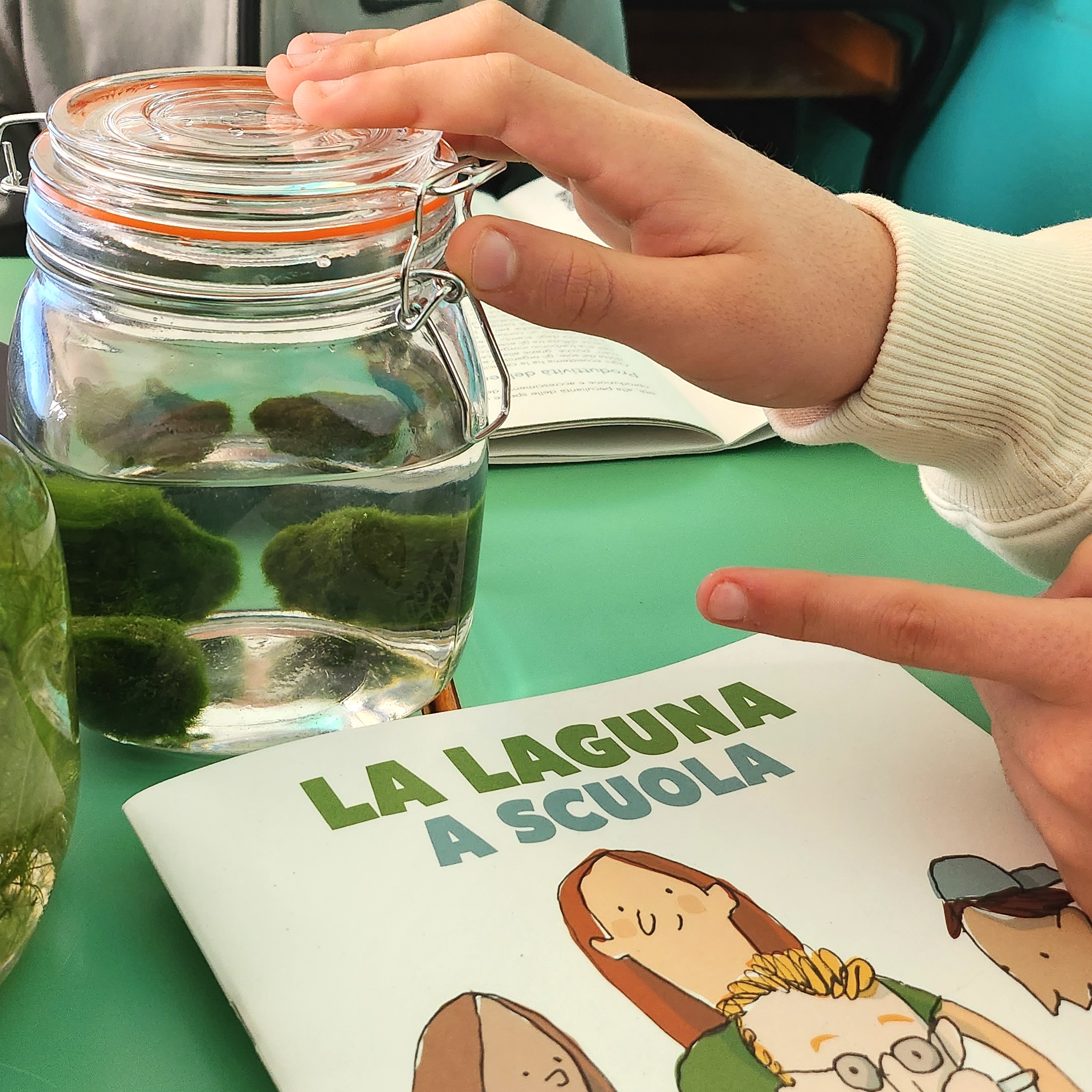 Il progetto prevedeva due fasi di coinvolgimento delle classi partecipanti. La prima fase si è svolta in classe, con una presentazione del progetto e una spiegazione dettagliata dell’importanza della biodiversità lagunare, supportata da approfondimenti attraverso lo school book appositamente realizzato.