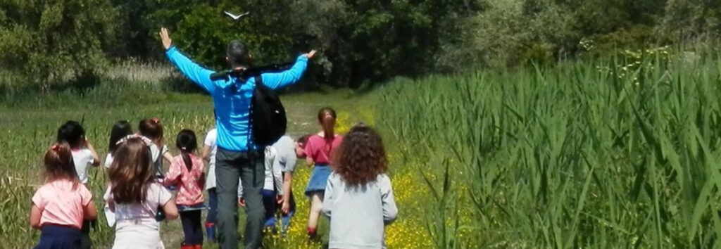 Attività di orientamento con mappe e bussole per scoprire la biodiversità lungo percorsi nell’Oasi.